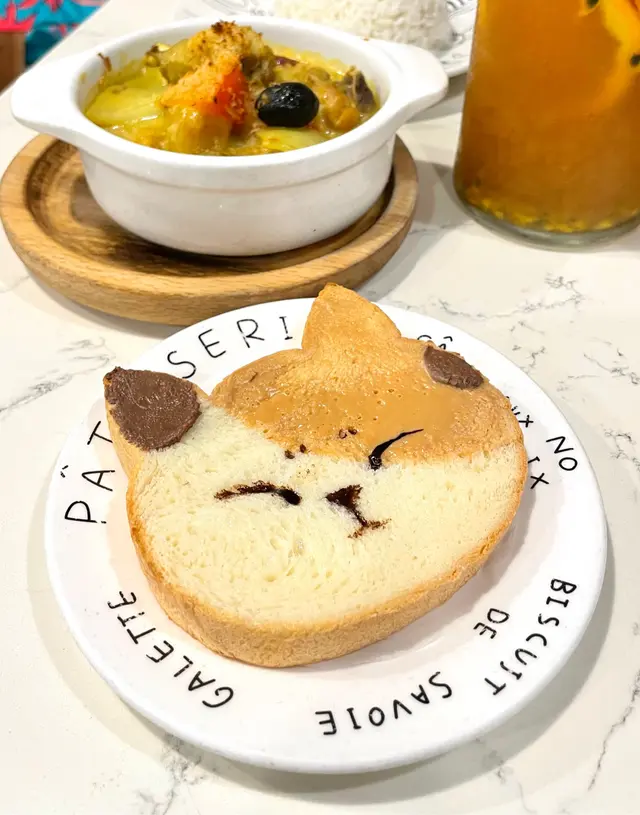 好多年無去澳門,去前上網睇下有咩餐廳好食,見到有間小店有貓貓造形嘅多士同甜品,立刻book mark !.花貓多士(煉奶/花生) MOP18有白貓、三色貓同花貓造型可以揀,我哋就揀左花貓,利用花生醬同鍊奶畫出花貓樣子,好可愛!完全唔捨得食(´▽`).綜合水果茶 MOP29真材實料入面好多水果,最緊要係唔會甜,每啖都飲到水果嘅味道.雪梨無花果玫瑰花茶 MOP32花茶唔會甜,而且入面好足料,雪梨味偏重.抹茶紅豆雪糕鬆餅 MOP45鬆餅食到淡淡嘅抹茶味,而且好鬆軟。抹茶雪糕抹茶味濃郁,紅豆🫘甜度適中,鬆餅再配上雪糕、忌廉同紅豆,令到口感更豐富.牛油果吞拿魚蛋沙律貝果 MOP26貝果都係貓貓造型勁得意,貝果焗到脆卜卜,內裡鋪滿吞拿魚同碎蛋沙律再加埋牛油果,健康又好食.…查看更多