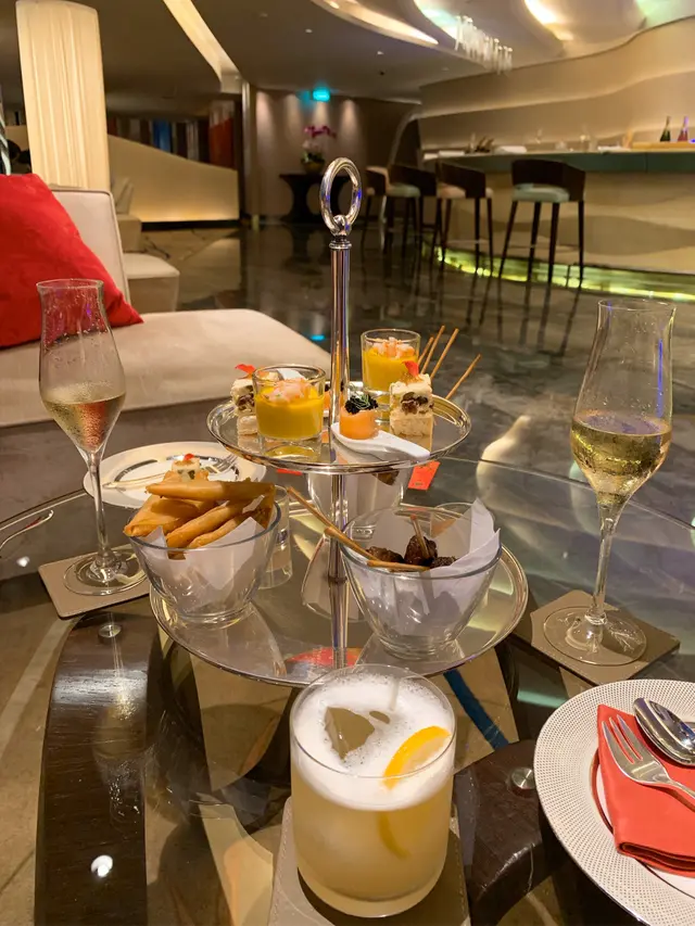 呢度係我去過最靚最抵最好嘅bar! 到目前為止我去過咁多地方呢度嘅happy hour is #1 of my list! 如果你鍾意飲酒,而且飲得,來澳門一定要嚟呢度,仲要係weekend嚟! 因為呢度weekend sunset hour只需要$248 for unlimited free flow and unlimited tapas tray! 星期一至四價錢平啲$198但係食物唔係unlimited. 係五星級酒店頂樓呢個環境同質素真係抵到冇得再抵! 平時喺酒店飲杯野閑閑哋都百幾二百,呢度你飲幾多杯都得! 再講食物,唔好以為任食就普普通通,成個tapas tray每一件食物都好好味完全食得出係精心炮製。佢哋嘅串燒仲好味過喺泰國餐廳食嘅,而且其他鹹點好特別超好食! 真係唔好錯過! 我第一日去完其實已經book咗第二日再去,但係前一晚飲得實在太醉所以最後取消咗好可惜!希望可以快啲再去澳門再嚟呢度。…查看更多