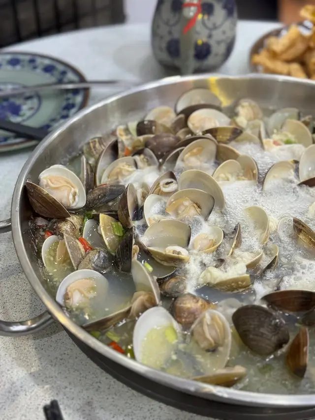 一直想試嘅卜卜蜆,真係無令人失望😍好鮮甜好食、無沙,咁大煲入面,得一粒有少少沙,其他全部都無!如果係食蒜之人一定勁開心🤣佢個蒜係致死量咁誇張!不過老實說,其他野食都好普通,而且選擇好少,牛肉方面,肥牛、滑牛都麻麻地;蝦滑好大份,而且食到有真蝦肉,可以一試✨;萵荀片切到勁勁勁薄,好易夾爛,要小心煮熟嘅時間🤣其他熟食仲試咗椒鹽粟米、手撕雞,粟米都可以的,幾好味,手撕雞就一般,可能都係返大排檔食比較好🤣…查看更多