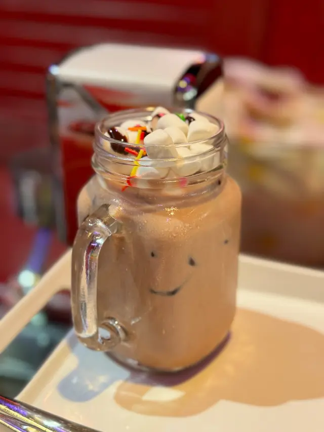成間餐廳本身設計是按照美國70年代。再配合反斗奇兵主題,令食客更加投入電影感。有室內及半開放式坐位。半開放式可以對望巴黎鐵塔。但因有食客長期霸佔。無緣坐下。個反斗奇兵套餐,要向職員直接下單。原價$136。如果用 Visa 信用卡,有八五折。個餐包一杯無花果汁及雞肉包。個賣相用巴斯光年做主題。無花果汁有點像奶昔。好飲。個包雞肉好鮮嫩。反斗奇兵粉絲萬勿錯過。…查看更多