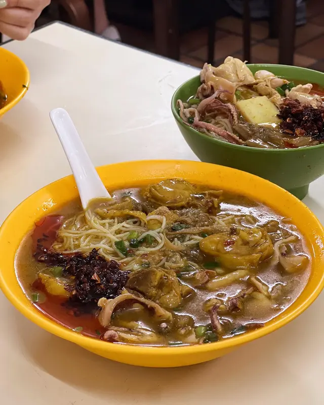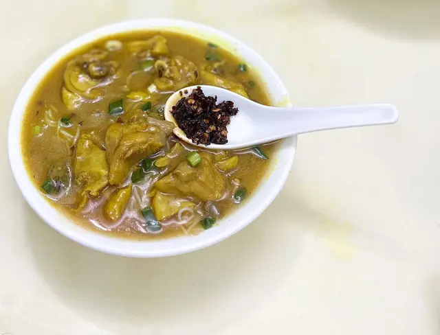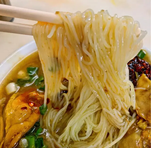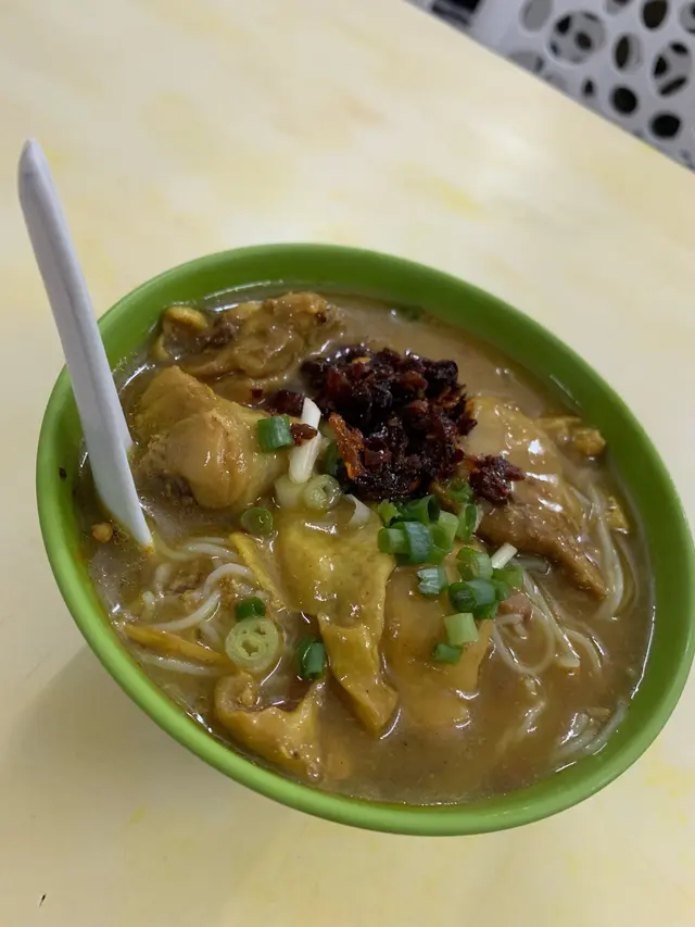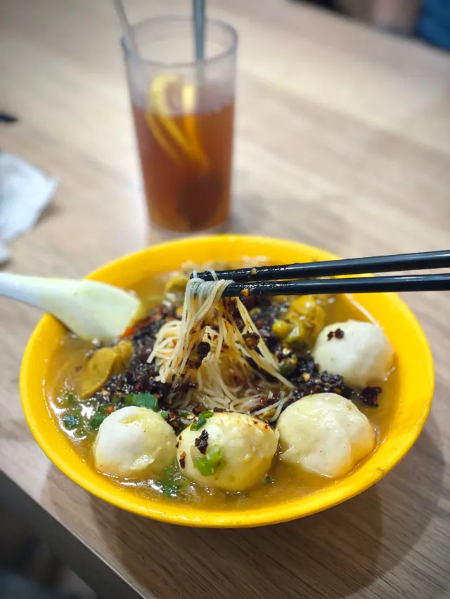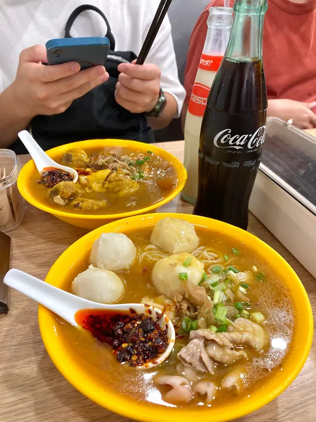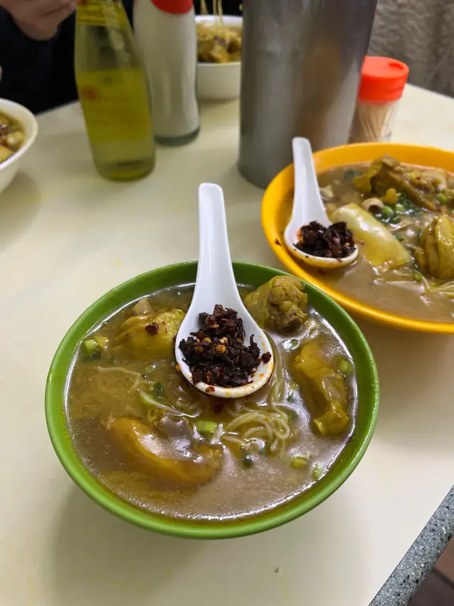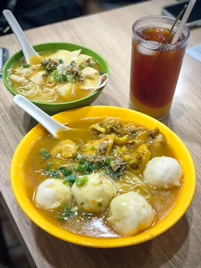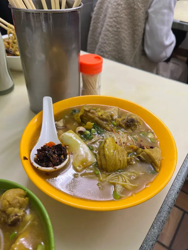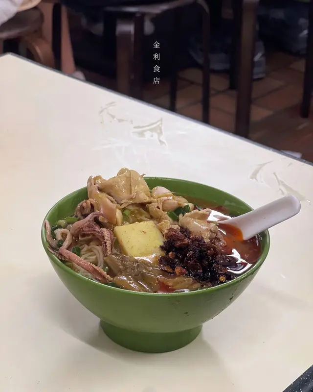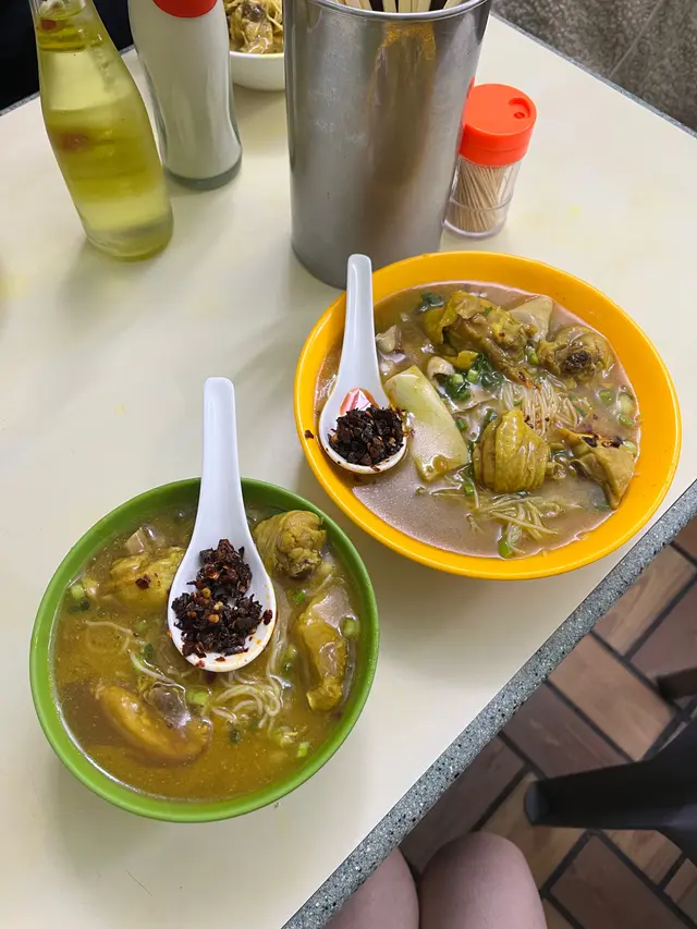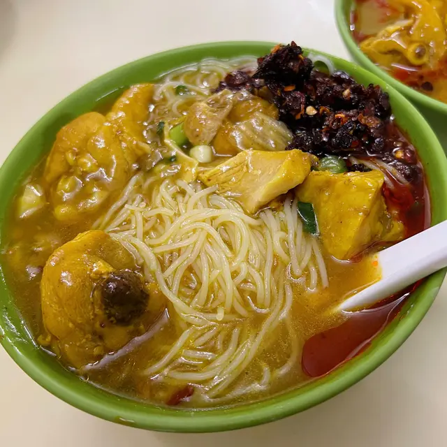咖哩味香 濃 但唔漿喉嚨 墨魚丸爽滑 好大粒 真正用墨魚打雞肉先係依碗米線嘅主角 吸收哂咖哩汁 而且雞肉嫩滑 雖然唔大舊同唔多 但骨少 令人一試難忘魷魚雞米相反男朋友點嘅魷魚雞米就被比下去我哋理想中嘅魷魚應該係水魷 無諗過係螢光魷魚 好細隻 份量少 同埋唔吸收咖哩味