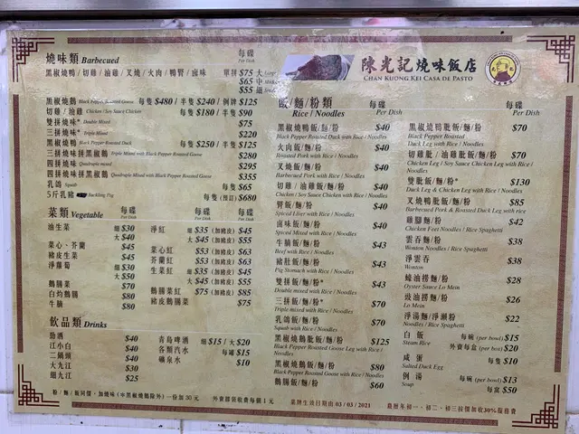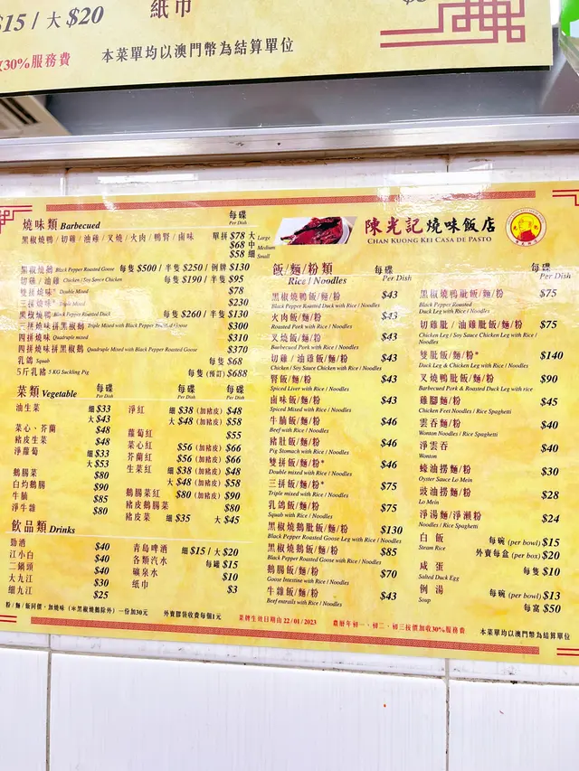 #搞串個pantry話說我哋喺 #澳門 🇲🇴 #新馬路 行緊嘅時候🏛️,見到有一間舖頭排晒長龍🔥,於是就即刻去Google下📱。原來佢係一間好出名嘅燒味舖頭🐓,主打黑椒燒鵝🪿,所以我哋根據網上嘅comment💬,揀咗午市晚市交界嘅時間嚟到🌅,結果真係唔使等位😆。我哋嗌咗🔴燒味雙拼(叉燒、黑椒燒鵝)($130),同埋🔵白飯($15/碗)。呢個價錢💰以香港物價去睇,唔算貴😛,唔知道味道係咪好出色呢?叉燒🌟🌟🌟我哋個拼盤用嘅係瘦叉🐽,肉質本身唔算多汁,不過底下嘅黑椒味🧂醬油汁都幾香,而且有油脂香味😋,點埋叉燒都唔錯。而且裏面有少部份係半肥瘦叉😍,有埋叉燒本身脂肪嘅半肥瘦😆就更加重油香味,正好多。黑椒燒鵝🌟🌟🌟🌟燒鵝畀咗鵝脾💕,本身嘅鵝油香味🪿真係幾好食,而且肉質都算腍🫦,唔會好癡牙或者好老。最特別嘅位係⭐️,佢用咗黑椒碎調味🧂,除咗燒鵝同埋醬油嘅味道之外🤤,仲有一層黑椒嘅香味,味道都唔錯。不過其實同香港🇭🇰食到嘅燒鵝味道質素差唔多。價錢💰:6 /10味道😋:6.5 /10口感🫦:6 /10賣相🍽️:6 /10環境🪴:6 /10推薦指數❤️:6.15…查看更多