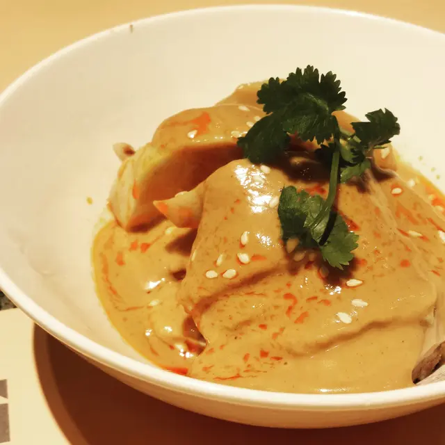倆口子到澳門 hea 遊已經一日吃足5餐。隨心走, 經過MGM 純粹只是入來觀賞一下美高梅其氣派盡顯的Shopping Mall. 經過 "食八方" 再看看餐單, 我們對望一下, 盡管未見肚餓, 仍想試下。我們點了3樣菜1) 涼菜 - 口水雞一上菜以為是放錯... 看似是什麼麻醬雞, 然後被斷定這確確實實, 如假包換的口水雞. 麻醬味道是OK. 不過喜辣之人, 一定會覺得沒有辣味. 所以我放上了餐桌上提供的辣椒油, 頓然覺得這碟口水雞, 好~美~味~呀~ P.S. 餐桌上提供的辣椒油蠻香的 2) 麻川擔擔麵上茶精緻的麻川擔擔麵, 單看外表已經非常吸引。如果你跟我一樣是個麻醬迷又嗜辣. 你一定要嚐試! 吃一口的擔擔麵, 是沒有感到很辣, 可是 aftertaste .....真的不得了。當你吞下去, 那種香辣味道才會由喉嚨慢慢滲透出來。3) 馬介休炒飯. 賣相及味道未見討好, 略兼太乾. 我也懶得拍照. 查看更多