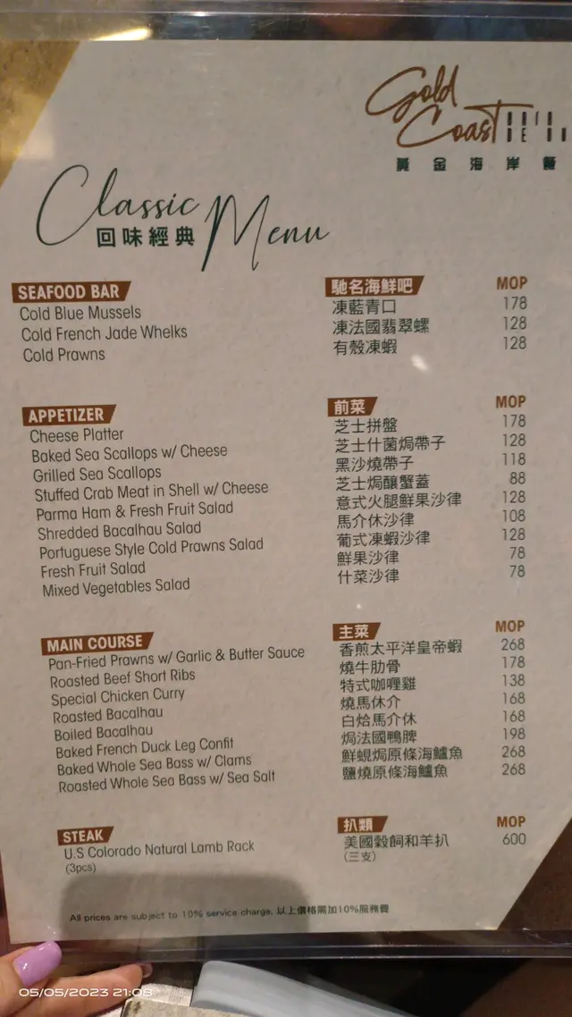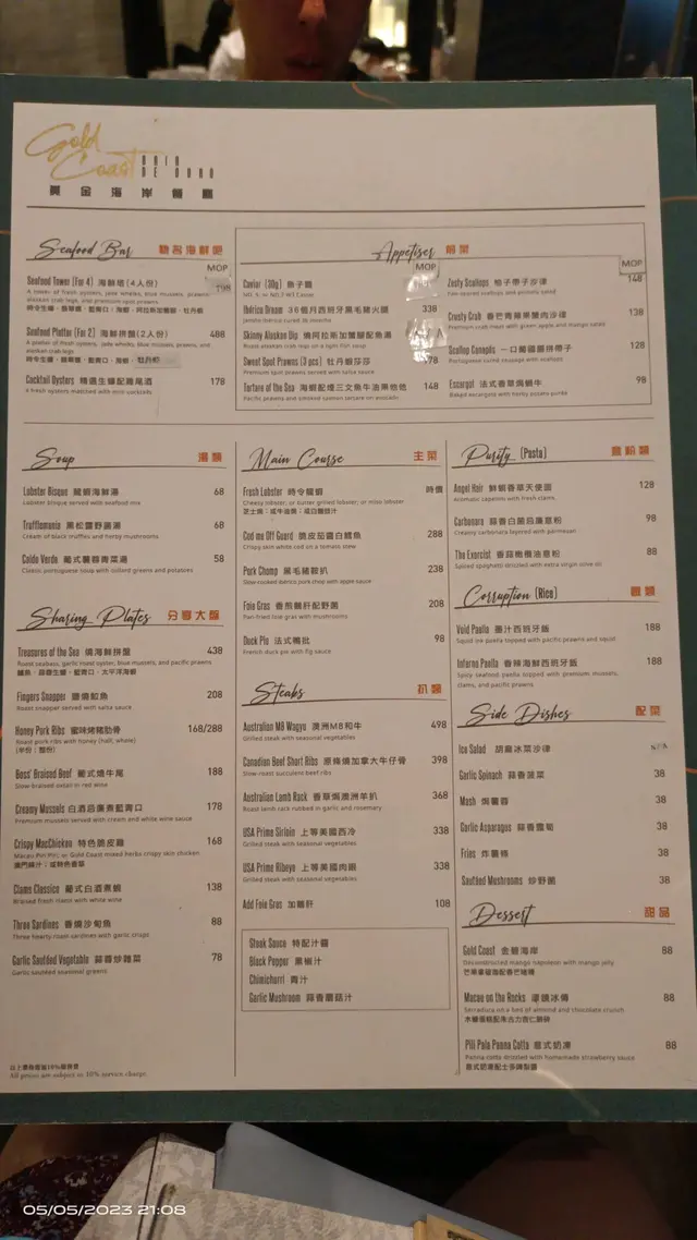 年年生日都話要去香港食生蠔,點知....呢幾年年年都weekday生日.....車......朋友知我鍾意就帶咗我去皇朝酒吧街黃金海岸,其實經過咗幾次不過都未入過去,因為門面真係唔夠吸引。不過d食物都ok ge,一開始當然要order咗生蠔先啦,totel 7隻,澳洲同法國ge都有,超鮮超好味><然後朋友ge雜菌鵝肝就到咗la,睇賣相真係一般般,但估唔到食落配埋個汁係好好味ga但最不幸ge事要發生啦,我order ge 牛扒仲dry過我,咬落冇咩汁,而且明明order 5成熟,食落口感完全唔似lo而為咗填補呢個牛扒ge不幸,我決定要食多round生蠔!!!!今次選擇全部都係法國ge,一於食盡佢最後埋單每人都差不多要800,覺得有少少貴,不過有咁多蠔就算數啦