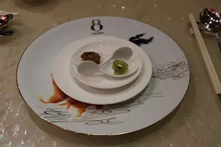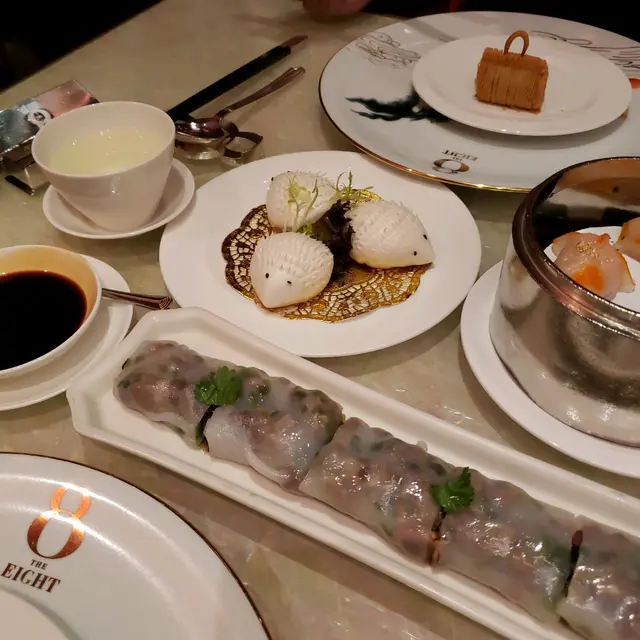 我一直好想去新葡京8餐廳,原因見到佢地點心做得相當精緻,特別係金魚餃。不過假期需要訂位真係唔容易😅 最終我係呢個復活節終於有機會去試下😜前菜係酒店送既,一隻鮑魚及青瓜果凍,果凍好清新超好味😋藍天使蝦金魚餃金魚餃裡面包著一隻蝦,職員話蝦係來自紐西蘭,金魚餃做得非常精緻😍 蝦肉彈牙。如果金魚既皮可以再薄小小就完美🙃原隻澳洲帶子黑松露雞粒酥酥皮做得非常好,帶子同黑松露既味道好味,推薦😄法國鵝肝金錢雞食肆已經不多見,我認為呢個係全餐最好吃既點心,層次分明,分別是鵝肝、臘腸和叉燒,好食到爆😍!超級推薦😄瑤柱桂花炒蟹肉腸粉感覺特別,材料有蟹肉、雞蛋及芽菜,腸粉皮超薄,吃起黎好有口感,掂😛。蜜汁黑豚叉燒如果可以做到有濃邊就完美🫢。甜品: 餐廳為每位客人送上葡撻及奶茶,我的葡撻加上了肉桂粉,好葡國 feel 😁埋單,每位客人會收到一塊杏仁餅,杏仁餅上印有餐廳logo,並印有與英記合作…查看更多