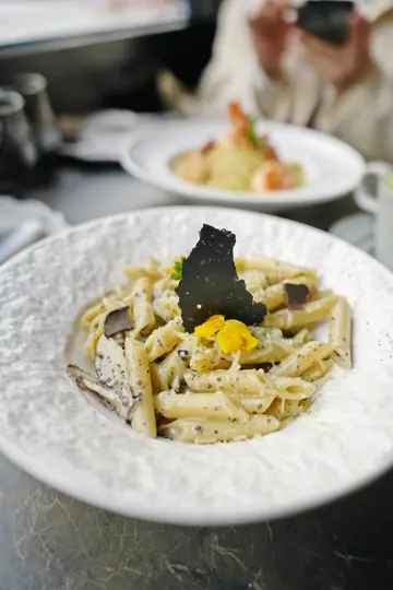 今次去咗喺澳門郵政總局附近嘅一間cafe其實就喺大三巴附近超方便唔難搵佢嘅午餐包沙律、餐湯、餐包同一個主菜牛油果奶油大蝦義大利麵 有三隻煎香咗嘅大蝦,肉質彈牙意粉每條都掛滿,濃厚牛油果奶油醬汁食起來又唔會好漏,加埋有牛油果粒粒真係好好味😋🥑🍤黑松露蘑菇.筆管麵 黑松露加奶油,再加上頂層的蘑菇,口感厚實creamy,每一條長通粉入面都充滿醬汁,成碟食哂都唔會好膩🍄🍵開心果咖啡拿鐵超推介,超濃勁濃嘅開心果味有人話想試一啖,結果飲咗我半杯😮💨呢度D甜品都好出名,可惜唔夠時間試唔到,下次一定會試下千層蛋糕…查看更多