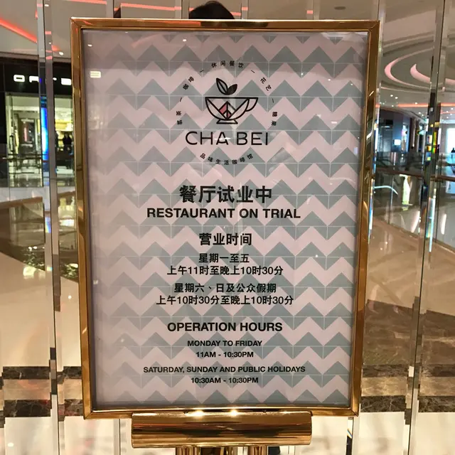 CHA BEI (路氹城) 網址: https://s.openrice.com/QrbS1ekS700 地址: 澳門路氹城「澳門銀河™」綜合度假城1樓1047號舖 電話: +853 88832221
