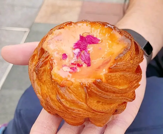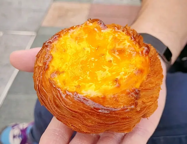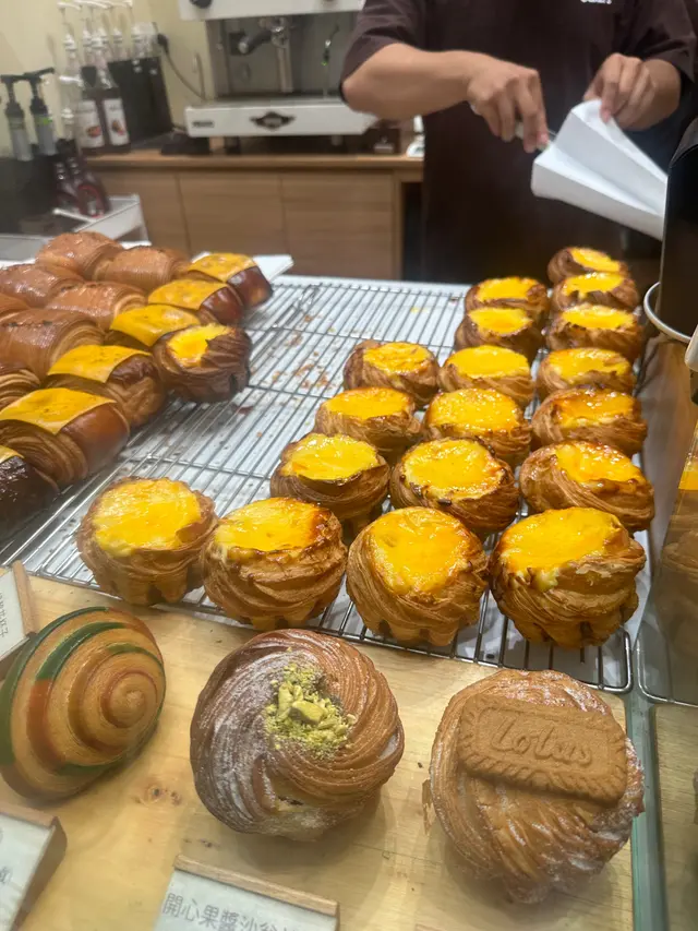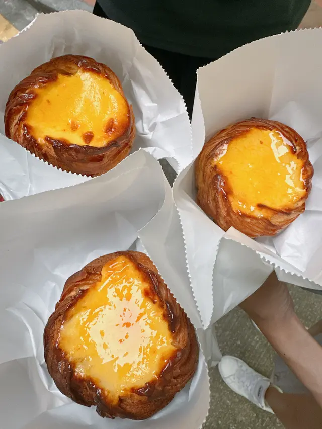 I tried their signature cheese flower cup this time, there was only one left when I was there!! We were so lucky!!! It turned out to be as big as my fist🥹🥹The cheese inside was so smooth and it was soft centered!! So be careful if you are eating it right away! Tho it wasn’t straight out from the oven when I bought it, the skin was still crispy! Their egg tart were made with 蘭王eggs from Japan, we were so full when we get there, what a pity😭so we just tried the cheese flower cup. But I will definitely come back next time to try out their egg tart next time😫…查看更多