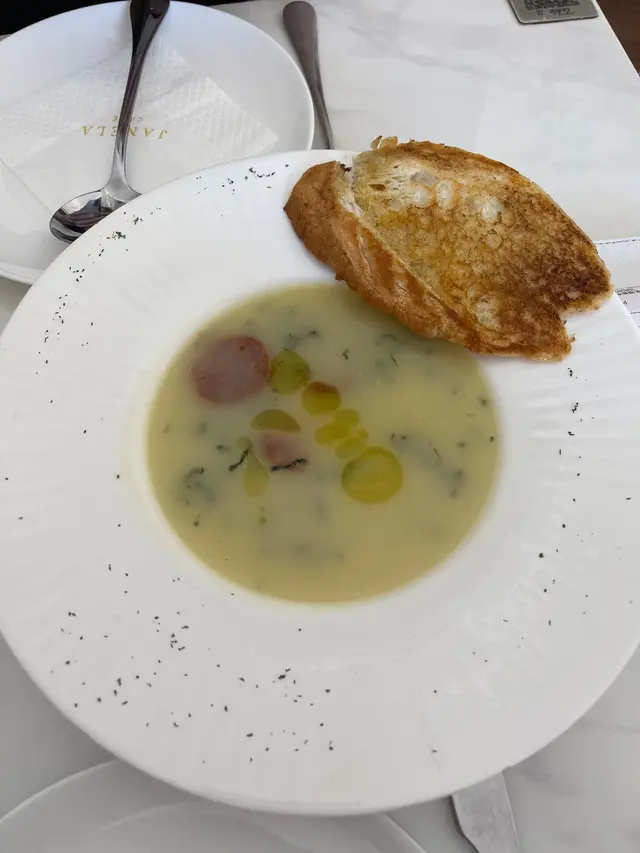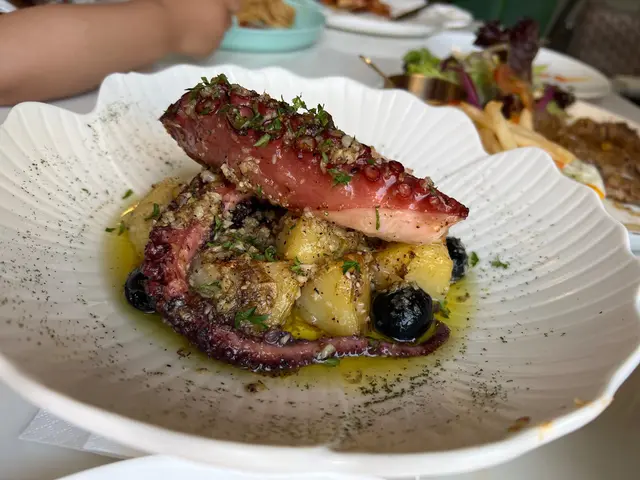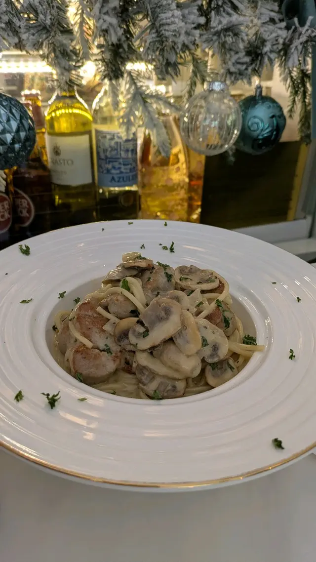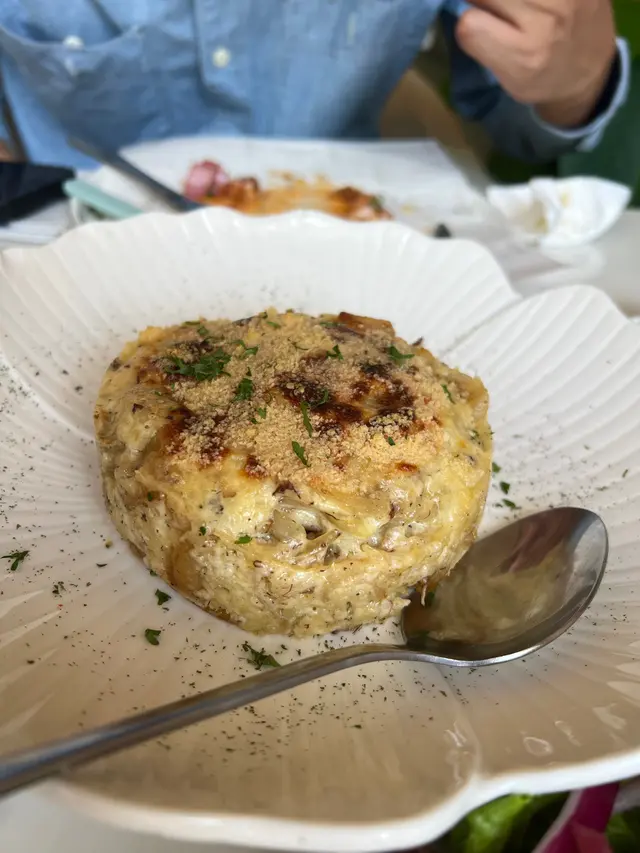 餐廳雖然細細間,但係以白色為主調,潔白明亮,樓底高,播住法式風情嘅音樂。雖然係葡菜餐廳,但係個感覺更加似悠閒嘅法式Cafe 。👌🏼葡式烤乳豬腩 將乳豬整到好似一個卷咁,外型有新鮮感,但味道同平時西式乳豬差唔多。外皮頗薄脆,有小小偏硬。肉唔算非常多同厚。👌🏼葡式牛扒包 用牛油煎香多士,麵包爽脆帶牛油香味。中間牛扒味道正常,有少少caper 嘅輕微嘅酸味,味道可以。👌🏼豬肉粒炒蜆 味道正常,但因為味道比較重,感覺override 左蜆本身嘅鮮甜味。👌🏼香草焗雜菜 炒雜菜帶住牛油同香草乾嘅味道,符合預期。👌🏼黑松露蘑菇配意粉 正常符合預期嘅味道 。整體來講,味道可以但又唔算好突出,但整體環境雅緻悠閒,服務員態度又非常好,整體用餐體驗愉快。…Read More