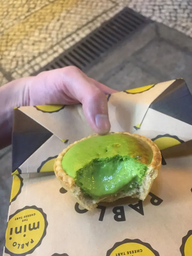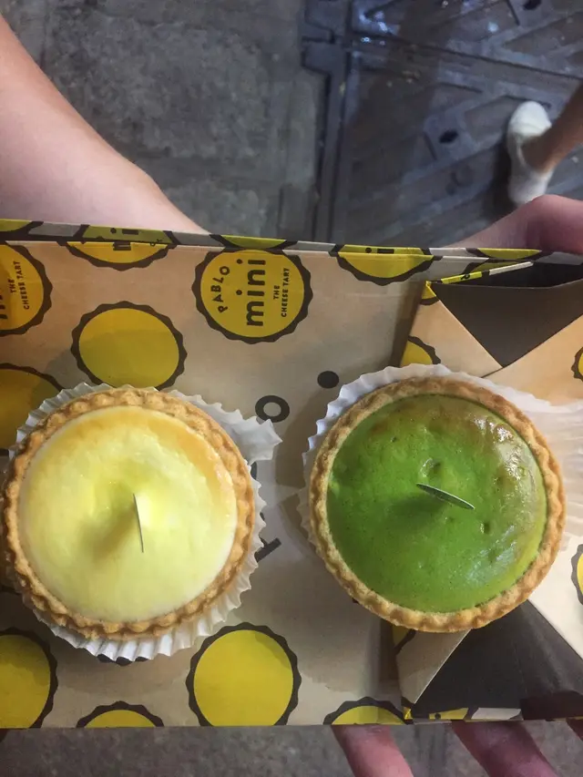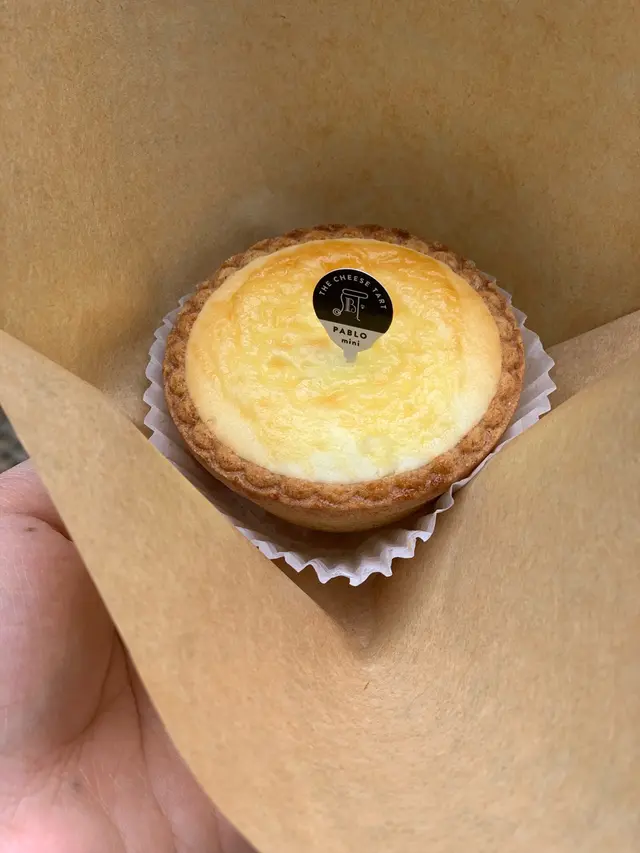 PABLO嘅芝士撻係超級出名,之前係大阪心齋橋見到條人龍都好長下,所以都無特登排隊買😂原來係澳門大三巴都有一間分店,個日見唔使排隊,同埋原來有mini版唔使買一大個,所以就買左一個試吓啦!**********<PABLO mini經典原味> $15mini版芝士撻有三個味道,有經典原味、朱古力同埋抹茶味!個芝士撻拎上手嘅時候唔係熱辣辣,只係比常温暖少少😟個撻皮係曲奇皮黎,但就唔係好香牛油味,同埋唔係好脆口!個芝士撻嘅餡食落係有綿滑嘅口感,但就做唔到流心嘅效果,同埋個味道有少少奇怪,唔係好似芝士味咁,整體真係有啲失望😥查看更多