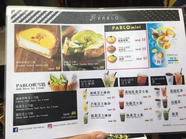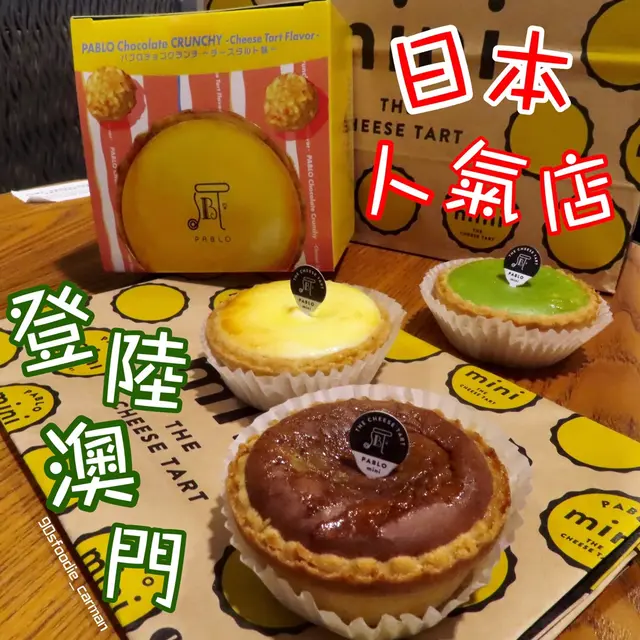 日本人氣過江龍開到黎澳門大堂巷,主打芝士系列,撻既飲既雪糕都係芝士。當日無咩人排隊,不過為左人人試到,每人每次限購兩個芝士撻同12件迷你撻。迷你撻買6件先有外賣盒裝,好似今次3件只用紙袋。🥧PABLO迷你 經典原味 朱古力 抹茶 ($15/個)迷你撻有三款口味,原味、朱古力同抹茶,曲奇撻皮實正脆口,原味芝士香突出,🍫朱古力味偏甜,🍵抹茶帶點回甘,三款中我最鐘意原味,每啖都香濃芝士味,朱古力同抹茶撻食落有芝士軟滑質感,但本身味道稍微蓋過芝士,常溫中間流心程度一般,未試過日本個間無得比較。🥤原味芝士冰沙 ($45)被我稱為「打爛左的迷你芝士撻」,芝士味濃厚,冰沙透心涼,令人不知不覺瘋狂吸入,有啲微酸醬,面頭插住碎左甜撻皮,呢杯可encore🤤🤤!! 店員解釋沙冰配打,需要耐心等待。一個芝士撻唔會膩,但飲埋冰沙真係唔得,一次吸入過多芝士好邪惡😂。出爐24小時內常溫保存,24小時後要放入雪櫃凍食,唔好焗番熱食!查看更多