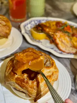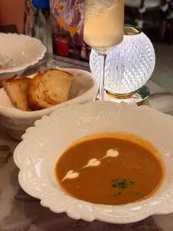 約咗朋友嚟食飯見到呢間餐廳真係好有特色💙 歐陸式嘅宮廷風中間仲有個大噴水池真係好氣派⛲️水晶燈配上電視播住黑白嘅經典電影Breakfast at Tiffany's 真係有種華麗又優雅既感覺🖤 食物同樣好有水準約會黎打卡絕對一流📷⭐️ Kale Caesar Salad 🥗 經典嘅凱撒沙律加上羽衣甘藍更加健康🥬 調味好清新又開胃同時唔會有草青味💚⭐️ Lobster Bisque 🦞龍蝦湯入口好Creamy🧡 滿滿嘅龍蝦鮮味濃郁好有法式既感覺🇫🇷⭐️ Jumbo King Prawn Handmade Pappardelle 🦐大蝦份量豐富燒得啱啱好保持住肉質嘅鮮甜🌊 手工做嘅闊麵果然特別有口感掛汁能力一流好有驚喜🍝⭐️ Grilled Iberico Pork Rack 🥩黑毛豬鞍嘅火候控制得好🐷一切落去保持軟嫩嘅口感🤩 配上肉桂蘋果醬嘅點綴襯托返肉香🍎 配菜既Mashed Potato非常幼滑帶牛油香🥔⭐️ Basque Cheesecake 🍰看似簡單嘅巴斯克芝士蛋糕🇪🇸同時做到焦香嘅感覺同埋中間細膩嘅口感🧁甜度恰到好處係好優雅既感覺…查看更多