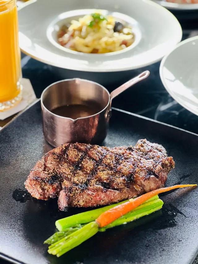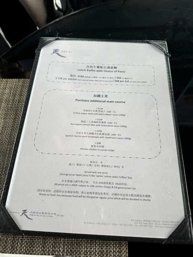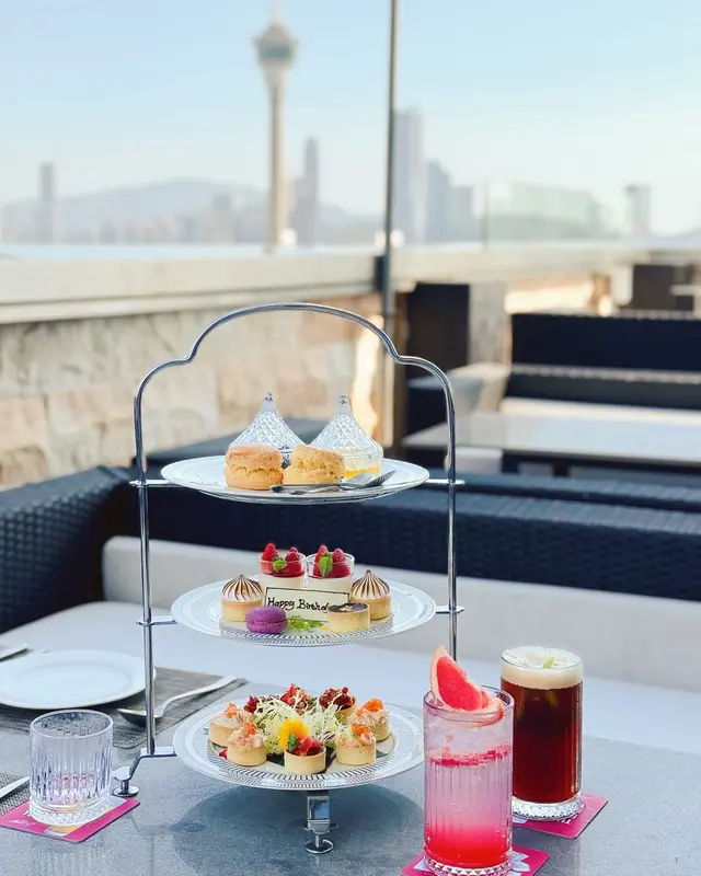 漂浮在澳門鬧市的空中花園,坐擁270°無敵風景,飽覽全澳景致。酒店提我們安排訂枱及接送服務露天梳化最低消費1500 基本上兩個人是容易達到點了兩客燒烤牛 還有生蒜頭及配菜一盤生蠔,還有一盤泰式生蝦(意想不到的很大盤)還有Merlot 紅酒最後點了兩個小蛋糕還可以寫上Happy birthday值得再來的一間餐廳見到有這個介紹佔地兩萬平方呎的 SKY 21,樓高兩層連空中花園,設計富品味及時代感,散發著簡約而華麗的氣派;店內提供精緻的創意亞洲美食、國際品牌專區、醉人音樂及獨有的澳門瑰麗景致,是一家集美食、購物、娛樂體驗於一身的時尚餐廳酒吧。居高臨下的 SKY 21猶如繁華澳門市區的空中之城,是澳門旅遊新亮點。置身於 SKY 21,你可以擁抱一望無際的星空;商務洽談、跳舞狂歡,或與三五知己把酒暢談,盡情享樂,感受非一般的樂趣。下次想嘗試下午茶時段過來2:30-5:30♥️…查看更多