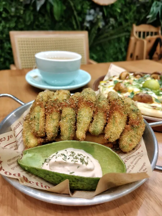 「炸牛油果拼薯條」🥑🍟絕對要試!牛油果條裹上輕盈脆衣,佐以酸甜植物基千島醬,與手切薯角組成罪惡二重奏。