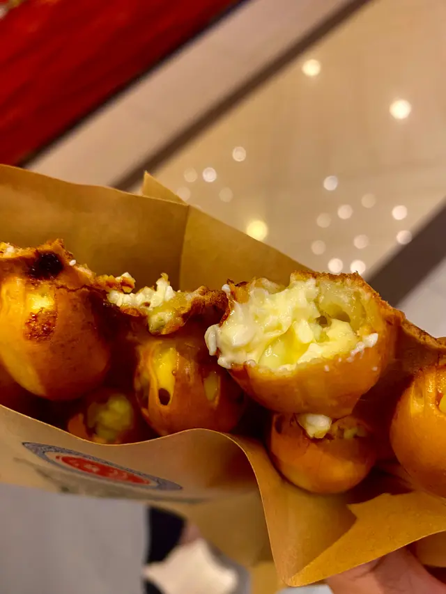 男朋友嘗試了第一口時,他覺得味道普通,沒有太大驚喜。然而,當我品嚐時,我卻感到非常驚喜!雞蛋仔裡面的葡撻還是熱騰騰的,有點燙口。原來,只是因為男朋友第一天吃的時候剛好沒有葡撻,所以他只品嚐到了普通的雞蛋仔口感。