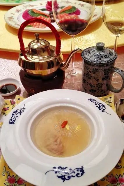 接著品嚐有傳是曹雪芹拿手迎賓菜的 老蚌懷珠 Braised soft shelled turtle with sea bass in supreme bouillon,這裡用上膠質豐富的甲魚為蚌,草魚肉打泥為珠,清鮮美味又滋補~