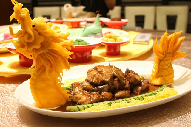 也吃了選用長江三鮮之一鮰魚製作的 龍舟鮰魚 Grilled catfish with cucumber and orange, Yang Zhou style,魚肉細嫩入味,魚皮也軟滑可吞吃,但最欣賞還是氣勢不凡的雕刻龍頭!