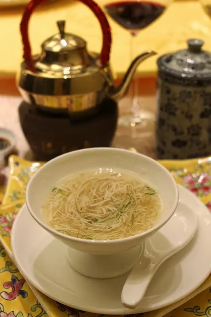 接著 菊花麻鴨 Double boiled wild duck with turnip, ham, spring onion and ginger 又是一道清潤滋補菜式,進一步彰顯紅樓宴多湯水、多蔬果的健康養生一面。