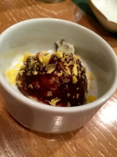 牛扒會跟薯蓉同幾件青豆,份量不大份,但如果又食頭盤又食甜品,呢個份量就岩岩好。
