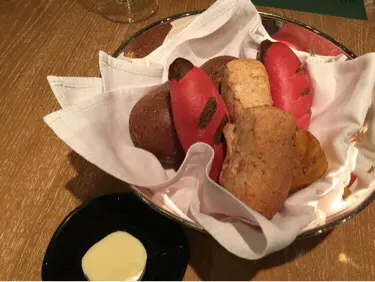 另外,值得一提的係拒個面包,當一嚟到嘅時候,服務員就會按你嘅人數取不同份量的面包比你,入面有幾款不同的。面包都係以最懷舊的火爐焗製的,味道比一般的面包香脆,食落都好食d。
