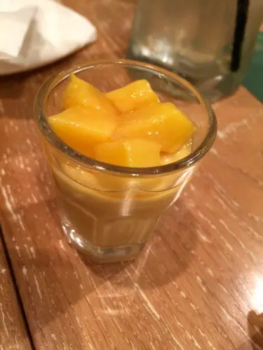 仲有個芒果布甸杯,細細杯,上面有幾粒芒果,芒果當造幾甜下。布甸都幾滑,似係自家製產品,唔似d加啫喱粉的。