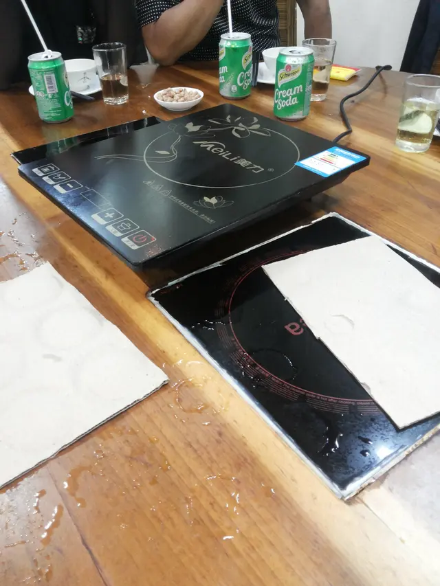 點了一個花蛤乳豬煲, 餐廳已為我們準備好電爐。不知是否傳熱上的關係, 餐廳要在熱爐上放上一塊紙皮, 才將乳豬鍋放上。