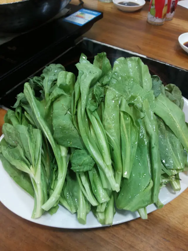 宵夜雖然一枱人, 但不宜太過豐富。一個煲, 要多個小菜, 再加碟菜就已經好夠。來一碟唐蒿, 爽口而有菜味。