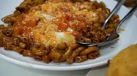 精簡後感,就是均勻上色不失彈牙的炒通粉,覆上略似勾芡的蕃茄炒蛋,暫未理解過人之處