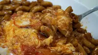 我們卻選擇了聽起來讓人不禁質疑,但又好奇的鮮茄雞蛋炒通粉 MOP42