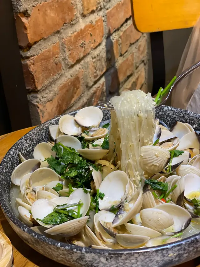 咖啡店主打泰式美食,這個香蒜蜆肉粉絲好吃得不得了🤣!! 愛吃粉絲的我,一下子把粉絲清光光了! 粉絲吸滿蜆肉的鮮味,加上蒜香,好惹味~蜆肉多到不得了\(//∇//)\,好滿足呀!