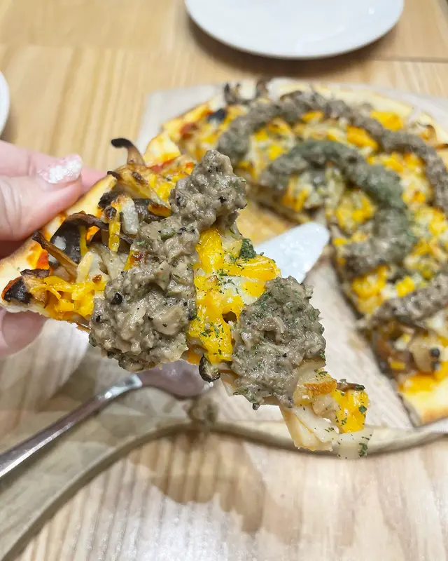 除了圍幾圈松露醬之外,薄餅上也有很多菇菇,吃起來非常豐富。