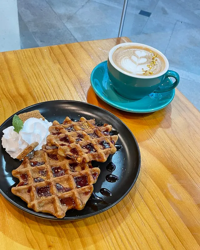 純素窩夫備受歡迎,略脆有點咬口,楓糖都幾好味。