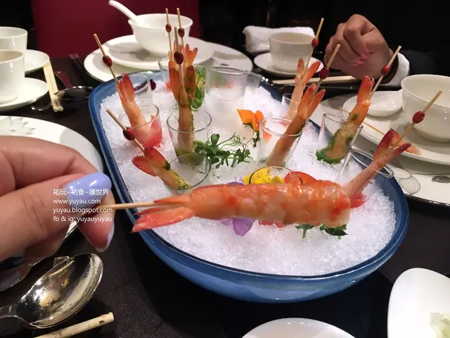 駌鴦沙冰凍海蝦,很有視覺效果的一道菜式,如果還放乾冰產生煙霧效果更好!