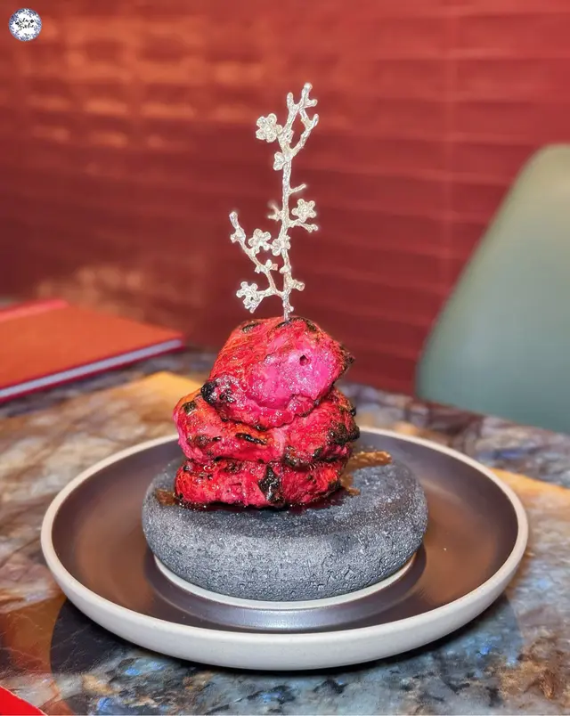 用上石榴與紅菜頭 醃制的雞肉像披着亮眼的紅色華麗外衣,食慾迅速拉滿🤩再經過在特製的Tandoor炭烤爐里,烤至外皮微微焦香,內裡依然保持著鮮嫩多汁,輕咬之下,肉汁瞬間在口中迸發,每一絲紋理都滲滿水果的甜蜜與香料的醇厚,碰撞出兩種風味🤤重點來啦~那肉質軟嫩的程度直接震驚餓鳥,咀嚼時像絲綢般順滑地在唇齒間分開,絕絕子啊😜
