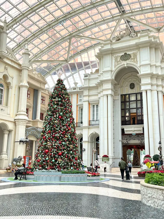 坐在天幕廣場座位可以一邊用餐一邊欣賞漂亮的歐式建築以及絕美聖誕樹,太chill了~😌