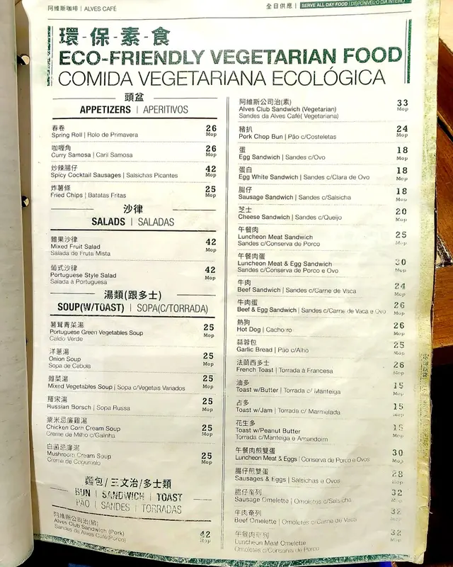 環保素食菜式 polly74等級42023-04-24507 瀏覽 關注 阿維斯咖啡係澳門有多間分店,雖然係一間葷食餐廳,但佢有提供素食餐牌,方便素食者同肉食朋友一齊食飯。店員好好係落單時有特意問要唔要走五辛。要注意每間分店嘅營業時間會有唔同,我去嘅南灣分店就係由朝早7:30開到晚上9:30。西洋燴魚 配意粉(素食)西洋燴魚 (可選配飯或意粉) (走五辛) (MOP $50)素魚口感似用大豆製成嘅素肉製成品,初頭以為只有素魚,點知配料幾豐富,有素腸、薯仔、青椒、蕃茄同橄欖,每樣食材各有3件。西洋燴魚 (素食)意粉係茄蛋意嘅味道,份量啱啱好。5111以上食評乃用戶個人意見 , 並不代表OpenRice之觀點。讚好分享環保素食菜式 阿維斯咖啡 https://s.openrice.com/QrbT1lZH900檢舉 張貼 評分3味道4環境4服務3衛生3抵食推介美食西洋燴魚 配意粉(素食)西洋燴魚 (素食)用餐日期2023-04-06用餐途徑堂食用餐時段晚餐