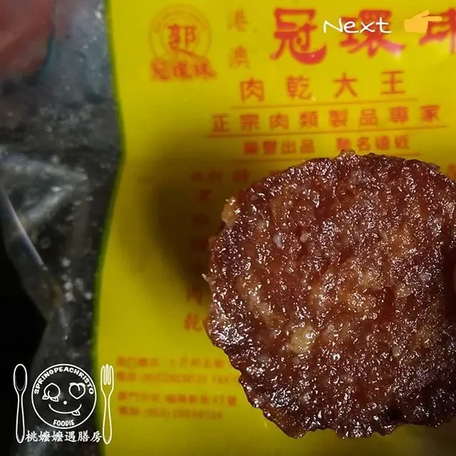 🤤另一款選了金錢豬肉乾,圓圓的肉乾內藏著筋膜,令她更具嚼勁,鍛鍊牙力首選。