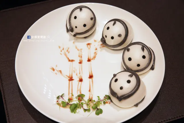 看到這道點心,大家都樂了。造型胖嘟嘟,十分可愛。殘忍地把熊貓咬開,軟熟的包子裡面藏著清甜的紫薯。難得地不過甜,不覺膩,值得一讚。
