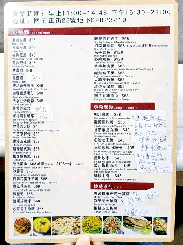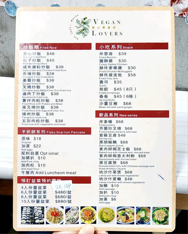 呢間素店屬蛋奶素,大部分菜式應該可以按顧客需要作出調整,例如走蛋。呢到可以選擇食自助餐或者散叫,自助餐MOP$35,主要食中式家常小菜,亦有炒麵、紅米飯、中湯同糖水。而我哋就散叫餐牌上嘅食物,種類幾多元化,包括有中式小菜、意粉、pizza、手抓餅、餃子、壽司飯卷等,散叫亦可任食紅米飯同中湯,要自己係出面潷,當日係牛蒡紅蘿蔔湯,好足料。不足係店舖面積細,會坐得冇咁舒服。