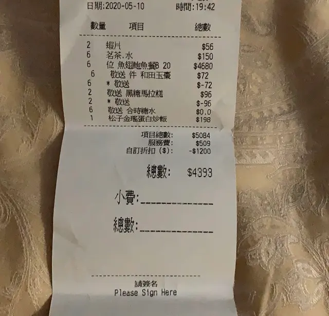 5月套餐 南海一號 2020-05-10叫了$580的那個餐,食得超差! 除了加服務費,還有茶水費和虾片費,加埋比左$700幾服務費!好痴線! 計落根本無點平到,最重要係個餐食埋啲野好唔低食,每人一隻鮑魚仔,一碟細細的麻椒牛舌6個分,最搞笑係陳醋雲耳同蘆筍都當係其中2個course,食完呢餐飯完全有一種被騙的感覺! 而且菜大部份都不熱,很差很差。 平均每人$730 食左:小菜3碟(麻椒牛舌,陳醋木耳,竹笙蘆筍) share的! 一隻鮑魚仔,一件燒帶子,一碗魚翅,一碗泡飯,一隻蟹腳!呢個價錢其實係好啲既中餐可以食到魚翅,鮑魚,蒸魚,虾,蟹...... 只可以講以後都唔會再去呢間餐廳! 太差!…查看更多以上食評乃用戶個人意見 , 並不代表OpenRice之觀點。讚好分享5月套餐 南海一號 https://s.openrice.com/QrbT0yyz700檢舉 張貼 評分2味道3環境3服務3衛生1抵食用餐途徑堂食