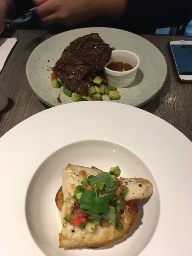 餐廳好細 枱同枱之前距離好少 都吾緊要 最緊要食物出色 一坐低已獲告知限時交枱(忘記時間因該我食左半小時內已走人)叫左牛排和魚排 牛排稍好一點 但以一間叫grill嘅店鋪黎講就...個汁好稀 黑椒就由侍應現磨 最好味係跟牛排嘅薯仔 吾係急凍戈些 份魚排太過火喇 好老 吾好味 份量亦超細 應該係女仔都剛剛好夠飽而已 本身諗住加錢跟曬餐飲 湯和沙律 跟著一坐低見隔離枱叫嘅不太吸引 就即忍手只叫左杯檸茶先 係明智選擇 唯一好處係吾駛加一 找錢戈陣特登唱散嘅散紙 有點小家 …查看更多