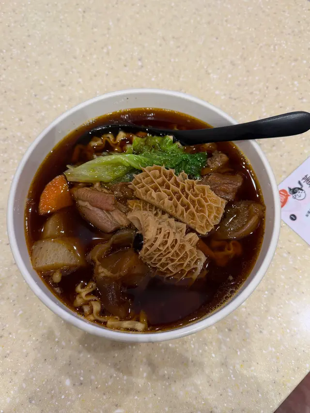 🔹招牌三寶牛肉麵(轉王子寬麵)轉咗寬麵果然無令人失望,麵條夠闊身,咬落煙韌有口感。牛腩、牛筋同牛肚都炆得夠淋,特別係牛筋入口即化。湯底濃郁得嚟唔會太鹹。🔹夜市鹽酥雞(海苔味)炸得金黃香脆,海苔粉灑得幾慷慨。雞肉保持到juicy。🔹滷肉濃白湯麵湯底真係好濃郁,飲落去好滿足。自選配料超級豐富:· 台南蚵仔肉卷幾特別· 滷水豬大腸處理得乾淨,夠淋入味· 蜂巢凍豆腐吸湯能力一流· 皮蛋同魚腐就正常發揮🔹BBQ香嫩雞柳便當雞柳燒得幾香,BBQ醬汁甜甜哋幾開胃。便當份量足夠,白飯煮得軟硬適中。🔹小食飲品· 甘梅脆地瓜:外脆內軟,甘梅粉酸甜配地瓜好夾· 涼拌海帶芽:清爽解膩· 冬瓜茶:甜度適中,幾潤喉· 無糖烏龍茶:茶味夠香· 凍冰爆咕咕:濃郁既朱古力味食物質素唔錯,價錢合理,係間可以再encore嘅小店。特別推薦佢哋嘅湯麵同甘梅地瓜,值得一試!…查看更多