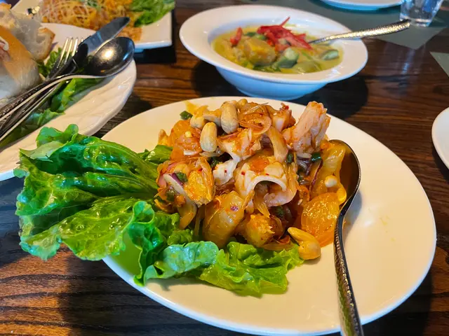 同同事聚餐。餐廳闊落,坐得舒服,泰國菜質素唔錯,整體樣樣都好食,服務幾好。炒金邊粉好香,造型幾靚,青咖哩雞同黃咖哩軟殼蟹好惹味,串燒同豬頸肉好香脆,泰式甜品拼盤,款式幾多,好味。…查看更多