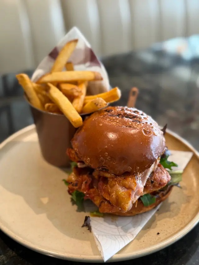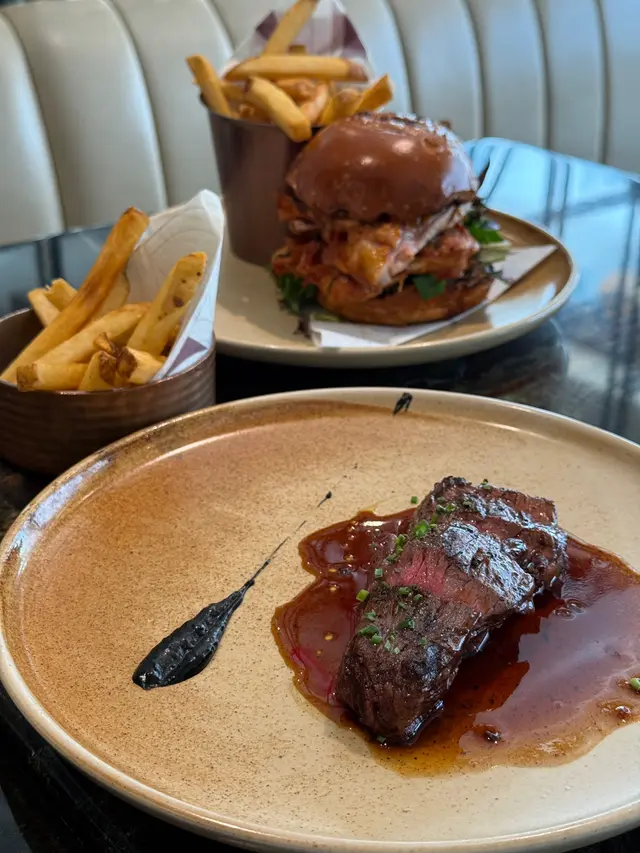 The Grill Room尖沙咀午市這些菜,grill風味濃郁~BURGER Chicken 烤雞肉漢堡,外脆內嫩多汁,配煙燻芝士同新鮮生菜番茄,醬汁微辣酸甜平衡不膩,麵包鬆軟吸汁,咬落香脆滿足,午市輕食首選,雞肉新鮮無腥味!Seafood Risotto 海鮮燉飯,蝦蟹帶子彈牙鮮甜,米粒creamy吸滿海味,配白酒蒜蓉醬滑順微鹹,芝士融化香濃不油,熱騰騰暖胃,份量適中適合lunch,海鮮新鮮撲鼻!Wagyu Beef Bavette和牛薄邊牛柳,炭燒外焦內嫩,油花豐富juicy多汁,配黑椒醬或紅酒醬香辣帶甜,肉質軟滑不柴,入口即化帶煙燻味…Read More