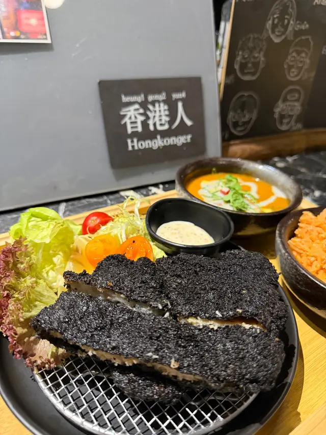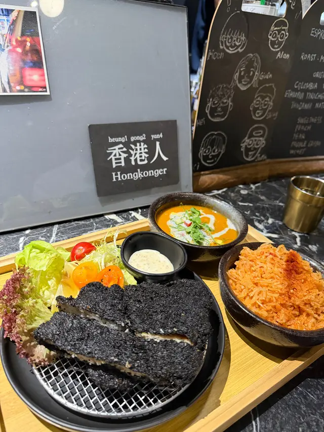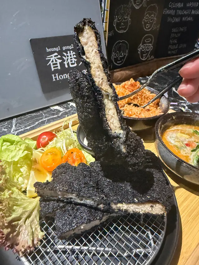 招牌炸黑炭包豬扒配印度香飯:豬扒用梅頭豬肉自家切,炸至外脆內嫩多汁,煙燻味微妙不膩,配咖哩印度香飯辣香入味,豬肉鮮甜彈牙不柴自家製煙燻豬腩卡邦尼捲捲意大利粉:豬腩煙燻後捲入意粉,肉質軟滑油潤,卡邦尼醬芝士奶香濃郁微鹹,煙味平衡酸度自家製芝士醬日式梳乎厘班戟:班戟鬆軟金黃,芝士醬融化拉絲奶香撲鼻,微甜日式風不膩,邊緣脆脆內裡濕潤水牛城雞翼配薯條:雞翼烤至皮脆肉juicy,辣醬熱辣酸甜入味,薯條金黃鬆脆鹽香芝士番茄焗肉丸:肉丸自家製牛豬混,焗後外脆內嫩多汁,番茄醬酸甜濃郁,芝士融化金黃拉絲香濃,微辣熱辣平衡不油…Read More