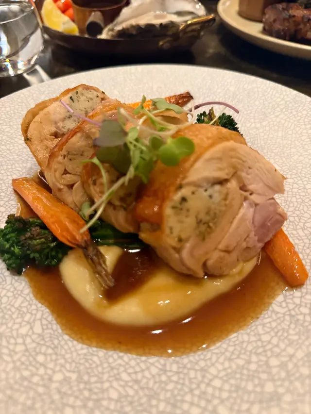 今日The Grill Room牛扒推介,脆皮外焦內嫩,香氣四溢超juicy!特別讚#10安士牛扒,7成熟火候啱啱好,唔乾身仲好香肉味炭燒美國10安士USDA頂級安格斯西冷牛扒,外層crispy焦脆鎖汁,內裡粉嫩多汁,炭燒煙燻味微妙不膩,肉質細膩彈牙,5分熟最佳!The Grill Room銅鑼灣香煎雞卷,法式風格超精緻,雞肉自家捲製煎得金黃香脆,配薯蓉西蘭花苗清新平衡!加$68-78,午市semi-buffet必加主菜~🥘香煎法式雞卷配薯蓉西蘭花苗:雞卷圓潤四塊,外皮薄脆微焦鎖汁,內裡雞肉嫩滑多汁不柴無腥,調味簡單鹽香突出鮮味;薯蓉綿滑奶香解膩,西蘭花苗脆爽帶甜…Read More