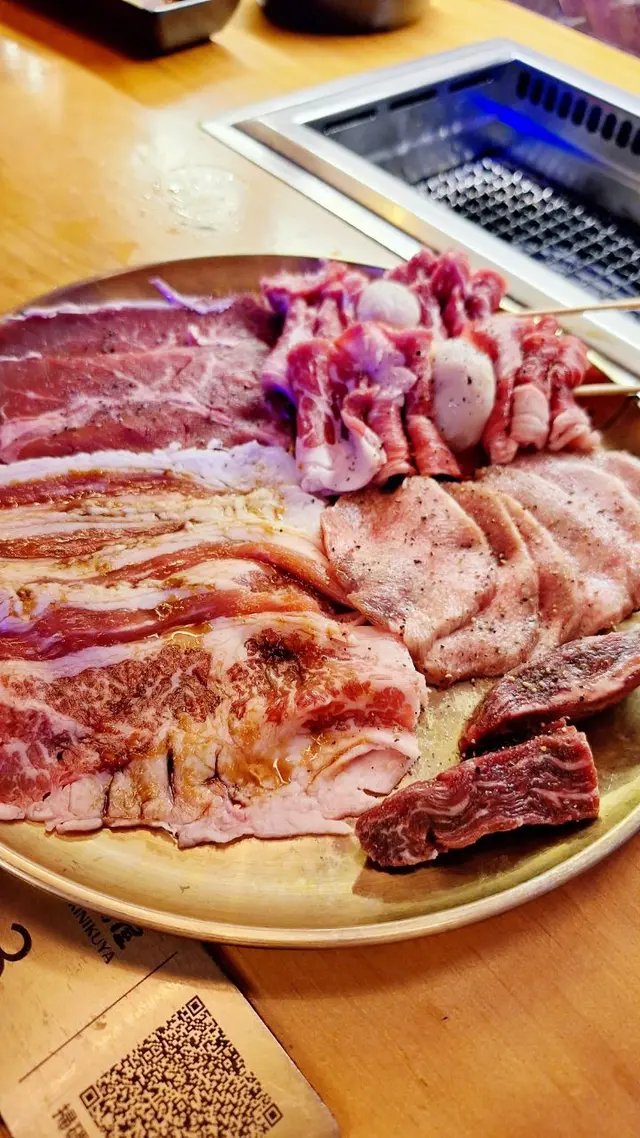 身為榴槤控兼食肉獸,聽說天后有間結合榴槤與燒肉的放題店,立刻相約朋友前去朝聖。這間「天后燒肉屋」的晚市放題2小時,絕對是近期最令我驚喜的餐廳!店內主打「榴槤燒肉放題」,將兩種極致美味完美結合。燒肉品質相當出色,必點的有油花均匀的澳洲和牛M7牛板腱,入口即化;肉味濃郁的美國安格斯封門柳,肉質厚實鮮嫩,每一口都是享受。私心推介荔枝牛肩胛串,清甜果香與牛肉的搭配令人驚艷;厚切牛舌芯爽脆彈牙,絕對是回本之選。而醬汁特選美國牛五花更是滋味十足,油香四溢~豬肉類同樣精彩,爽脆豬頸肉燒至金黃香脆,醬汁五花腩肥瘦適中,蘸上特製醬汁令人回味無窮~海鮮方面,日式蒜蓉大虎蝦鮮甜彈牙,蒜蓉牛油烤帆立貝濃香惹味多汁,爽脆白鱔片皮脆肉嫩,每一款都值得品嚐~其他肉類如乳鴿皮脆肉嫩,韓式雞肉與摩薩醬汁雞肉都各具風味,鵝肝多士也很香口~最令人期待的當然是馬來西亞D24榴槤任食,榴槤香濃綿密,品質絕不馬虎。現場即製的榴槤薄餅火熱香脆,榴槤餡料都很豐富~用餐期間可以飲品任飲,還有清酒、梅酒、紅白酒等選擇,最後我們以哈根大師雪糕作結,雪糕都可以任食,好滿足啊!雖然還有其他炸物、飯麵、蔬菜等選擇,但我們已經110%飽了,唯有下次再試~整體而言,這裏食物水準不錯,服務態度親切,上菜速度又快。$349/位,另有加一收費,喜歡榴槤和燒肉的朋友,這間絕對值得一試再試!…Read More