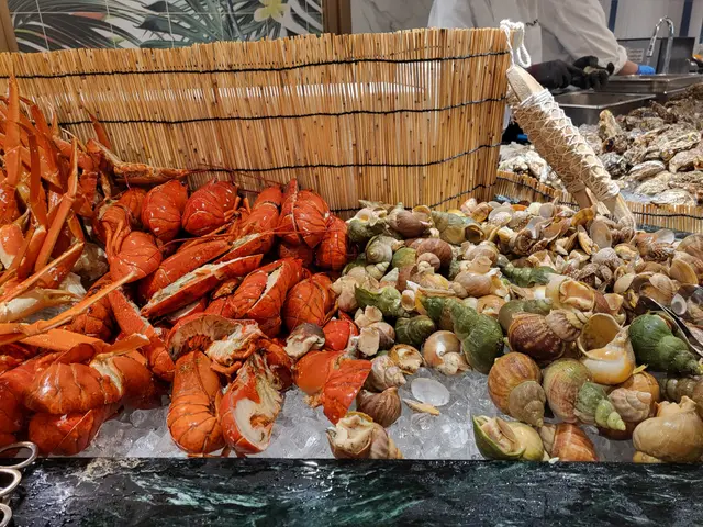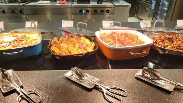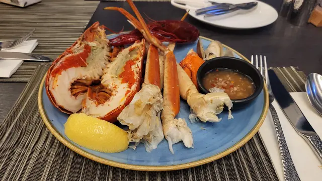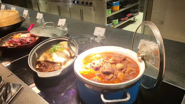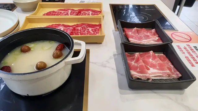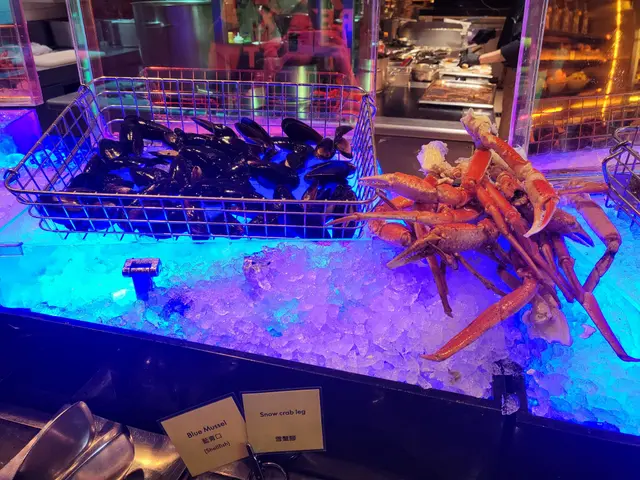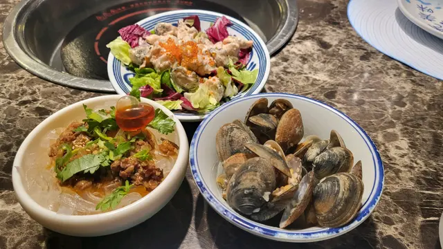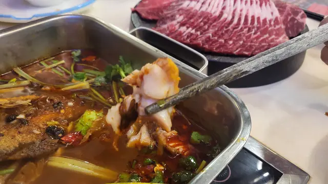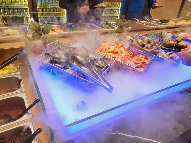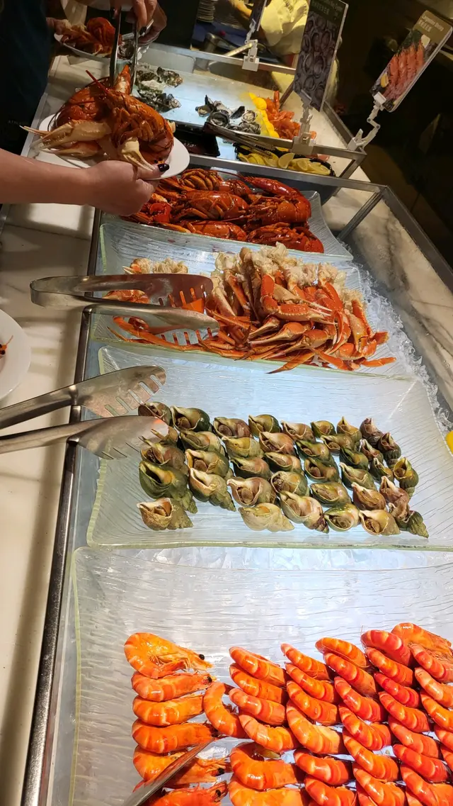 隨著撈海鮮自助在國內逐漸興起,呢股熱潮亦席捲香港,瞬即爆紅。收費大致跟國內相近,但因為車費同時間都慳咗好多,所以吸引大量顧客光顧。先後到訪過九龍灣同荃灣分店,九龍灣嗰間較擠迫,荃灣就寬敞些,兩間氣氛同樣熱鬧自助區分為以下幾個部分:**魚池**生猛海鮮係最大亮點,包括蝦、大頭蝦、蟹、蜆、花螺、鮑魚等,凡是自己撈嘅新鮮感更高!場內有店員幫手洗淨海鮮,令大家放心食用😃**火鍋配料**  琳瑯滿目嘅丸類、花膠、水魷、鯇魚片、生蠔,甚至不常見嘅紫羽衣甘藍都一應俱全。自己最like花生芽,吸收湯底精華,超級好味😋!**熟食區**  有烤榴槤、小龍蝦、點心、涼拌菜等,款式豐富多樣,適合不同口味👍🏻**飲品**  選擇多到數唔晒:罐裝飲品、果汁、清酒、梅酒、咖啡、茶、熱飲都齊全**甜品**  大福、泡芙、布甸、芝士蛋糕、雪糕等,滿足甜品控**下單食品**  燒乳鴿、燒生蠔、燉木瓜、鵝肝多士都不俗👍🏻,牛肉就較為平平,即使係澳洲M5和牛,肉質韌,咬感較柴👎🏻🩷🩷小貼士🩷🩷午市用餐時間約3小時,較為寬鬆,可以慢慢享受。晚市只有2個小時,要留意時間