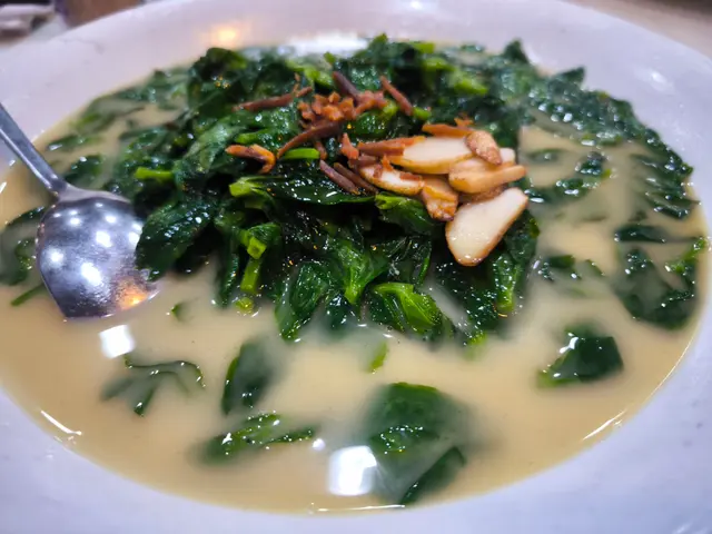 今日幫襯咗一間喺尖沙咀嘅低調高手粵菜館,叫咗四個餸,四個都非常精彩。首先介紹嘅就係需要預訂嘅八寶鴨,入面材料非常豐富,有栗子、白果、茨實、蓮子、冬菇,仲有大大粒乾瑤柱,煮得夠林夠入味,又唔會好甜。叫咗個上湯浸豆苗,啲豆苗都幾嫩滑,質素唔錯。小炒王真係必試嘅一個餸,炒得夠乾身,而且冇乜油,芋頭絲、韭菜花、蝦乾、榨菜絲等材料配合得好好。脆皮咕嚕肉都做得唔錯,個甜酸汁教得好好調教,外層皮脆而且鬆化,真係幾好食。…查看更多