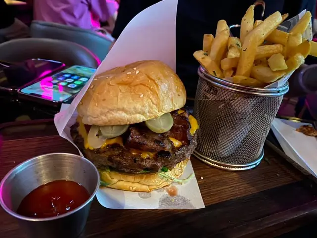 老友又帶細佬我去食好西....屯友們可以去試吓喇    平民嘅價錢高級餐廳嘅享受 位於屯門紅橋果邊 其實成日都會經過 但係都唔知入邊有好西食😆 因為門面成間酒吧咁 真係俾佢門面呃晒......入正題先 佢地係做屯門區小有嘅 西班牙菜  我都係第一次食三個人 點左 一客牛扒 一個burger 同埋一碟香辣蒜味蜆意粉.....牛扒叫左五成熟 😝 入口好嫩 有水準 ....反而個人手即做burger 仲有驚喜 牛肉漢堡扒真係好好食 有肉汁  老板話係佢地D廚師自己 全人手做出嚟 值得推介 ....蜆意粉都好味 ....... 食物同環境都一流 可以約埋三兩知己叫杯drinks  慢慢傾吓偈又得  食下好西又得。呢到絕對唔會話見你一食完就要你埋單走人果D!…查看更多